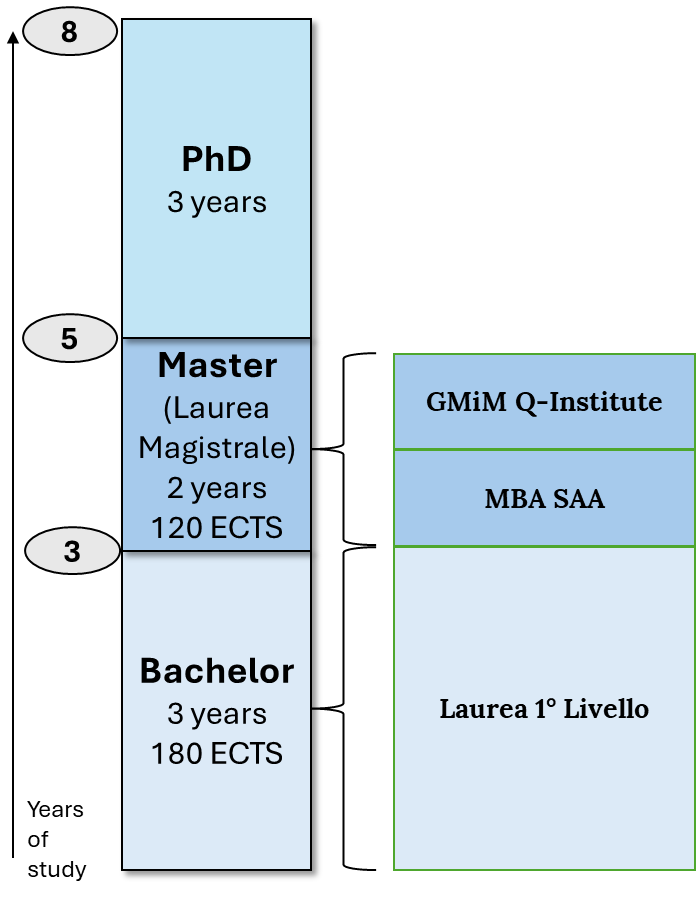 A customised plan of studies for SAA alumni, which makes it possible to achieve the Master’s level (Laurea Magistrale) in about 1 year (unless you opt for a more diluted pace); in the following SAA alumni plan of studies (subject to validation during admission phase):
